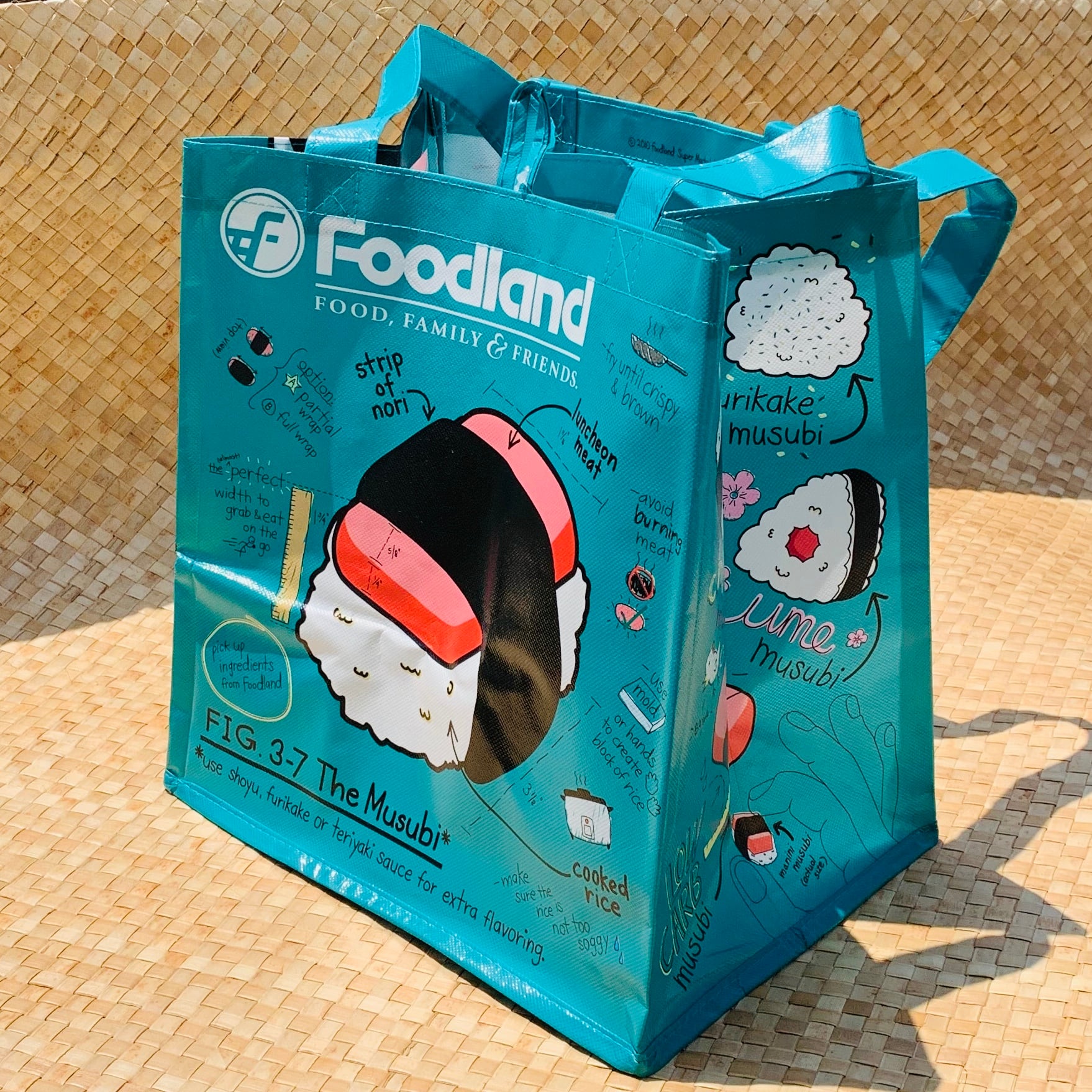 from Honolulu エコバッグ(Foodland) 縦33cm (持ち手除く) 横30cm 底23cm 見た目以上にいっぱい入りますよ! スパムオニギリ柄がかわいい!